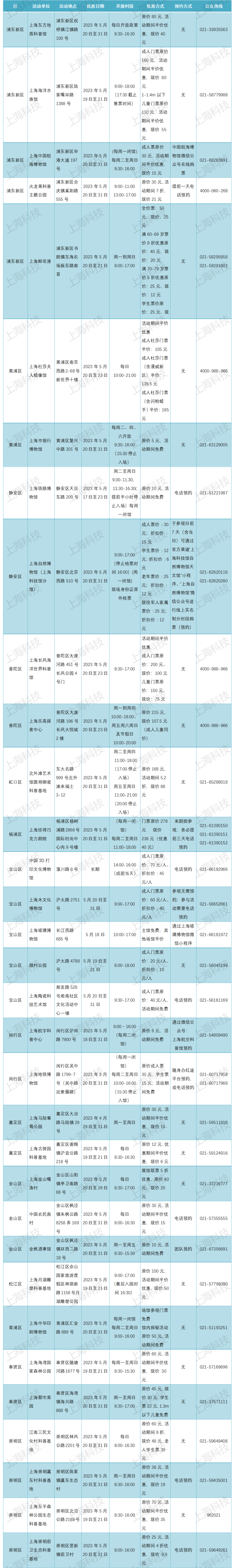 2023年上海科技节即将开启 33家科普基地优惠开放(附表)