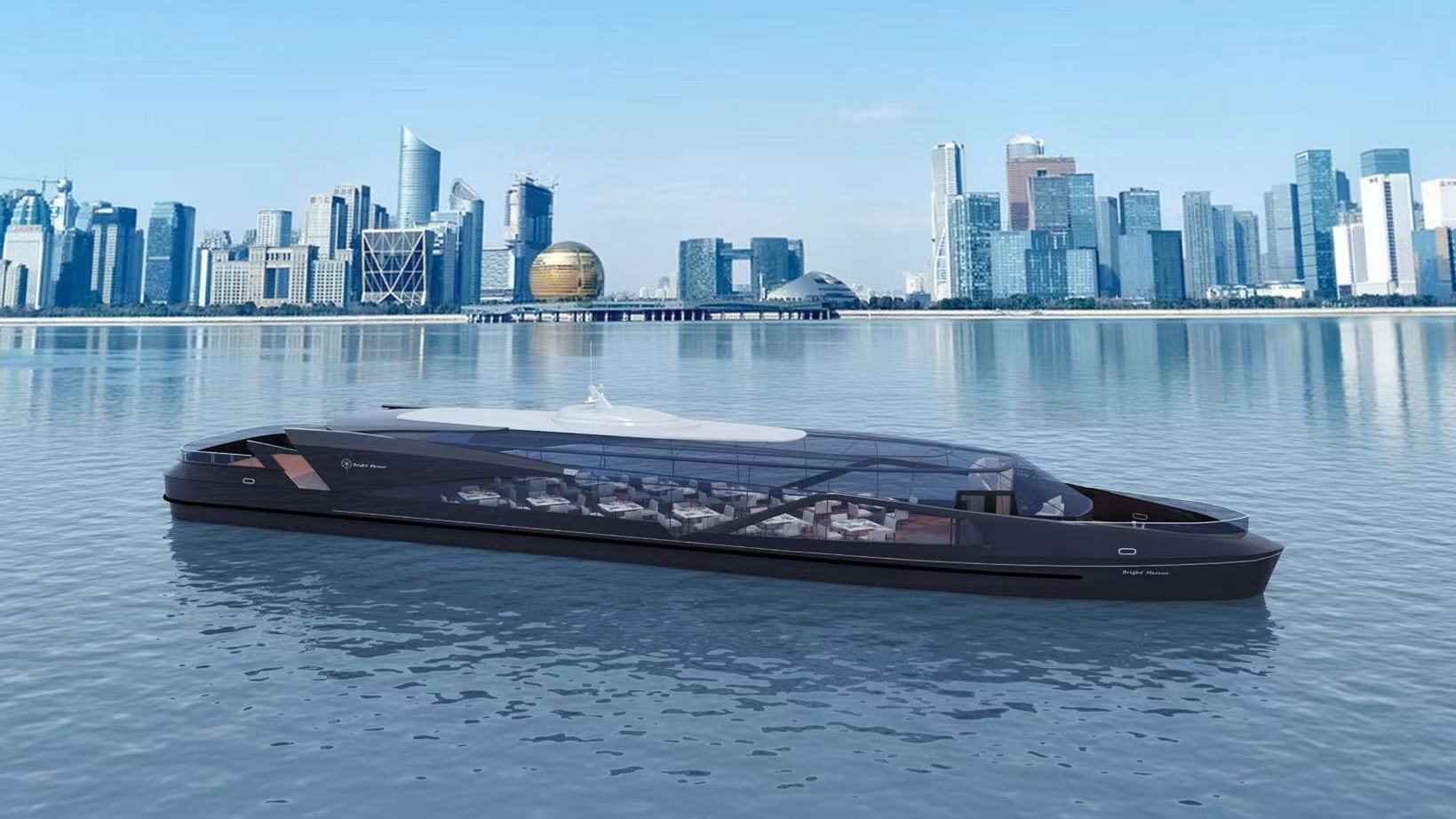 该项目是为“诗路文化·三江两岸”水上黄金旅游线提供首批高品质、新能源游船。游船从外观设计到功能分工彰显时尚、创意、科技的理念。未来该批游船将推出水上观光餐饮综合服务,游客可在游船上品味到杭帮菜、日料等美食,感受多种饮食文化。