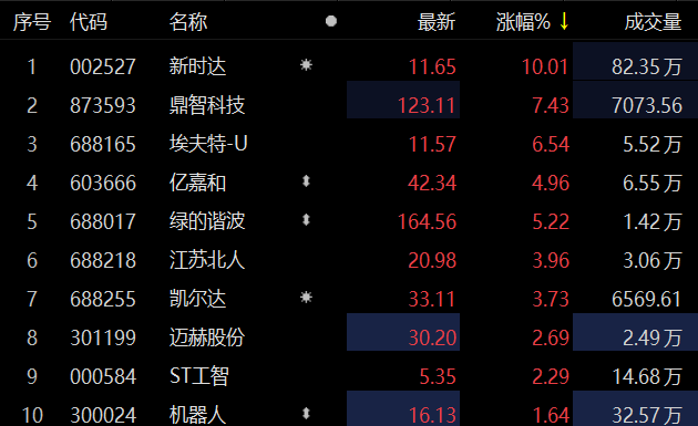 上证报中国证券网讯 6月20日,机器人概念股表现活跃,截至9:58,新时达4天3板,鼎智科技、绿的谐波等跟涨。