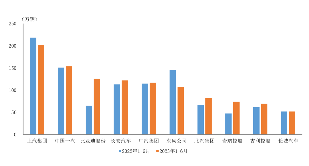 上证报中国证券网讯 据中国汽车工业协会统计分析,2023年上半年,汽车销量排名前十位的企业(集团)共销售1104.3万辆,占汽车销售总量的83.43%。