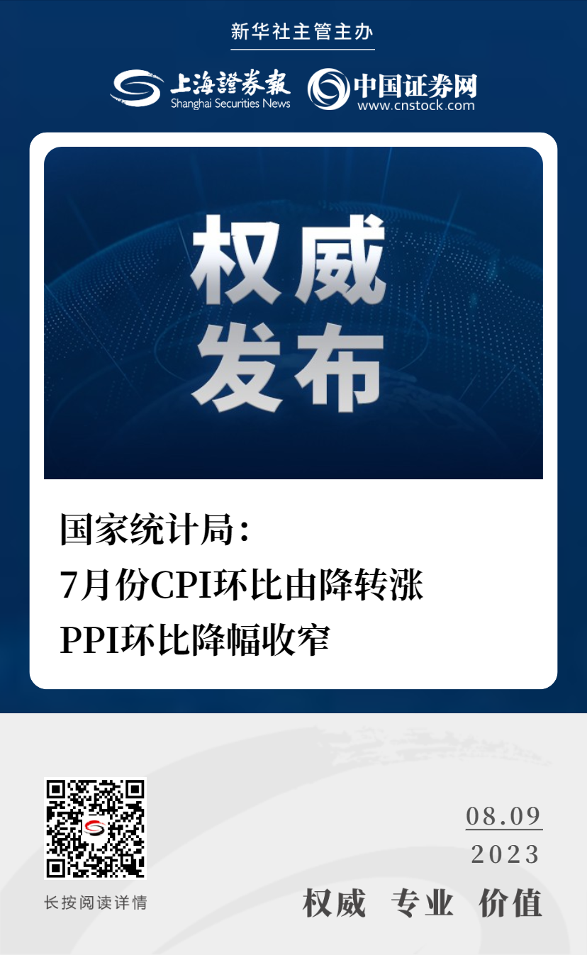 上证报中国证券网讯 据国家统计局8月9日消息,国家统计局今天发布了2023年7月份全国CPI(居民消费价格指数)和PPI(工业生产者出厂价格指数)数据。对此,国家统计局城市司首席统计师董莉娟进行解读称,7月份CPI环比由降转涨,PPI环比降幅收窄。