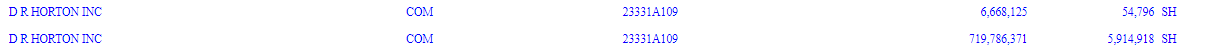上证报中国证券网讯 巴菲特旗下伯克希尔·哈撒韦公司当地时间8月14日公布二季度13F持仓文件。文件显示,伯克希尔公司大手笔押注楼市回暖。在二季度,该公司新建仓3只房地产建筑商股票,包括美国销量最大的房屋建筑商DR Horton公司,近600万股的持股二季度末时市值约7.26亿美元;1.1万股房屋建筑商NVR的持仓市值为7056.8万美元;房屋建筑商Lennar近15.3万股持仓市值为1723.8万美元。