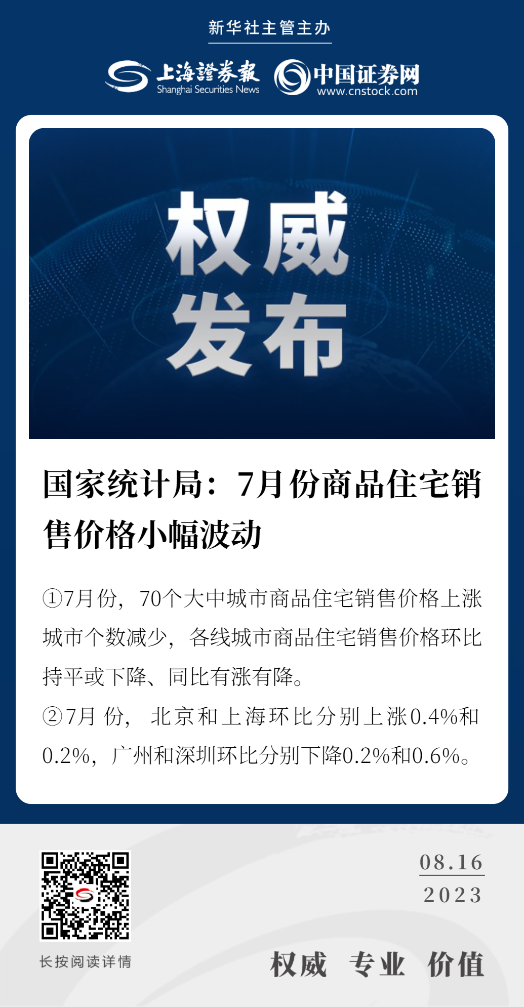 上证报中国证券网讯 据国家统计局8月16日消息,国家统计局城市司首席统计师绳国庆解读2023年7月份商品住宅销售价格变动情况统计数据称,7月份商品住宅销售价格小幅波动。2023年7月份,70个大中城市商品住宅销售价格上涨城市个数减少,各线城市商品住宅销售价格环比持平或下降、同比有涨有降。