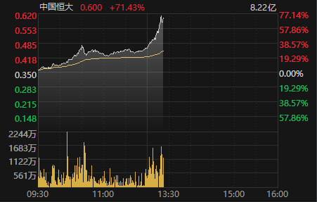 港股中国恒大午后涨超70%