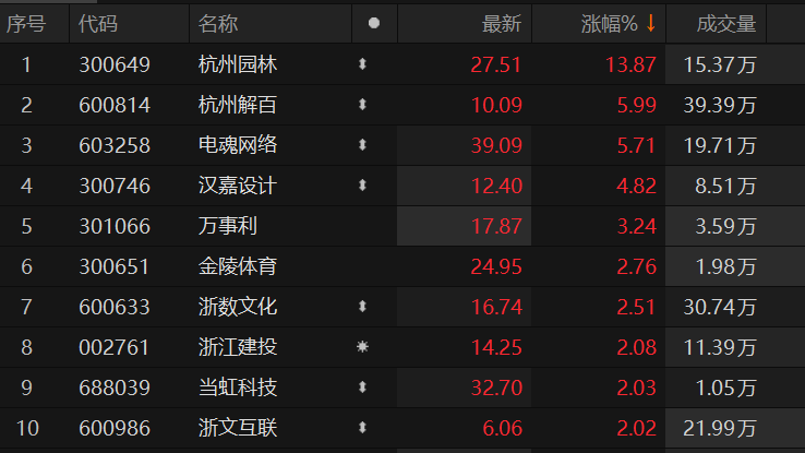 杭州亚运会板块异动拉升 杭州园林涨超13%