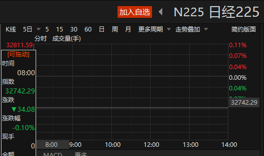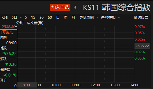 上证报中国证券网讯 据Choice金融终端数据,9月13日开盘,日韩股市齐跌。日经225指数跌0.1%,报32742.29点;韩国综合指数微跌0.01%,报2536.22点。