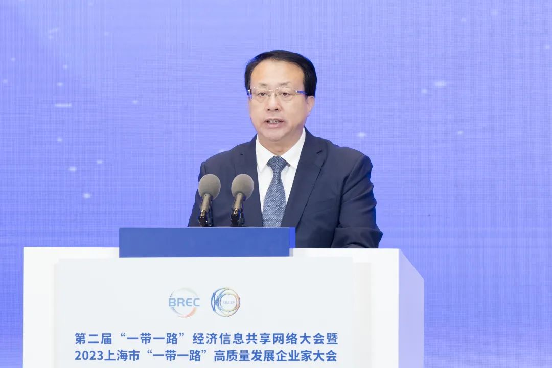 副市长华源出席。中国国际经济交流中心总经济师陈文玲作主旨演讲。会上,“一带一路”经济信息共享网络上海联络处揭牌,“丝路e启行”小程序上线,“行走丝路BREIP Trip”项目启动。