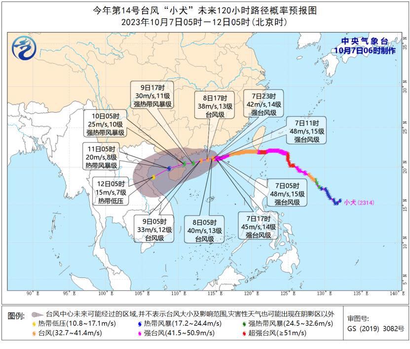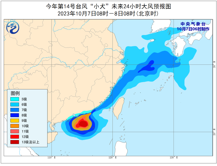 今晨,台风“小犬”仍在我国南海北部海域,距离广东汕尾大约190公里。中心附近最大风力有15级(48米/秒),中心最低气压为945百帕,仍为强台风级,预计未来“小犬”强度维持或缓慢减弱,并以每小时5-10公里的速度向西偏南方向移动。