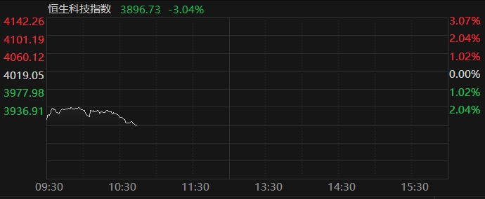 恒生科技指数跌幅扩大至3% 恒生指数跌近2%