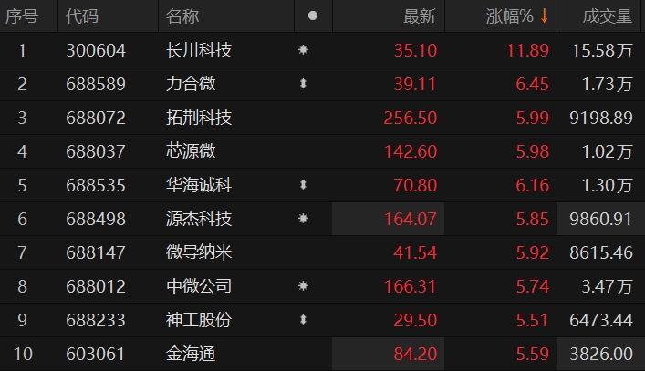半导体板块走高 长川科技涨超10%