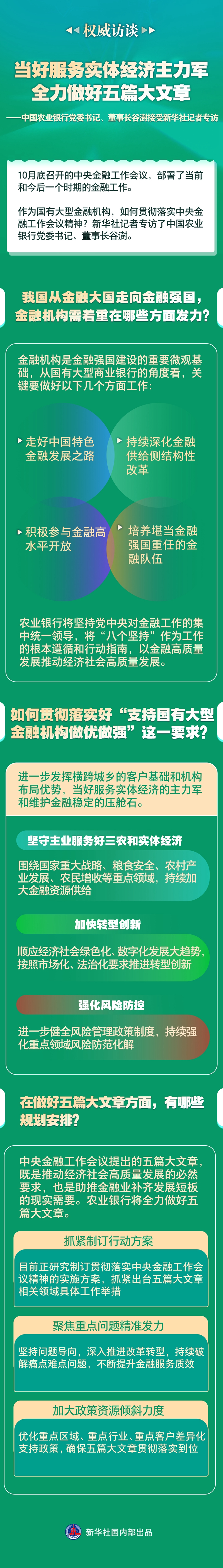 权威访谈 | 当好服务实体经济主力军 全力做好五篇大文章——中国农业银行党委书记、董事长谷澍接受新华社记者专访
