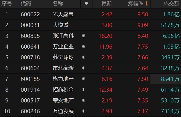 房地产板块震荡走高 光大嘉宝触及涨停