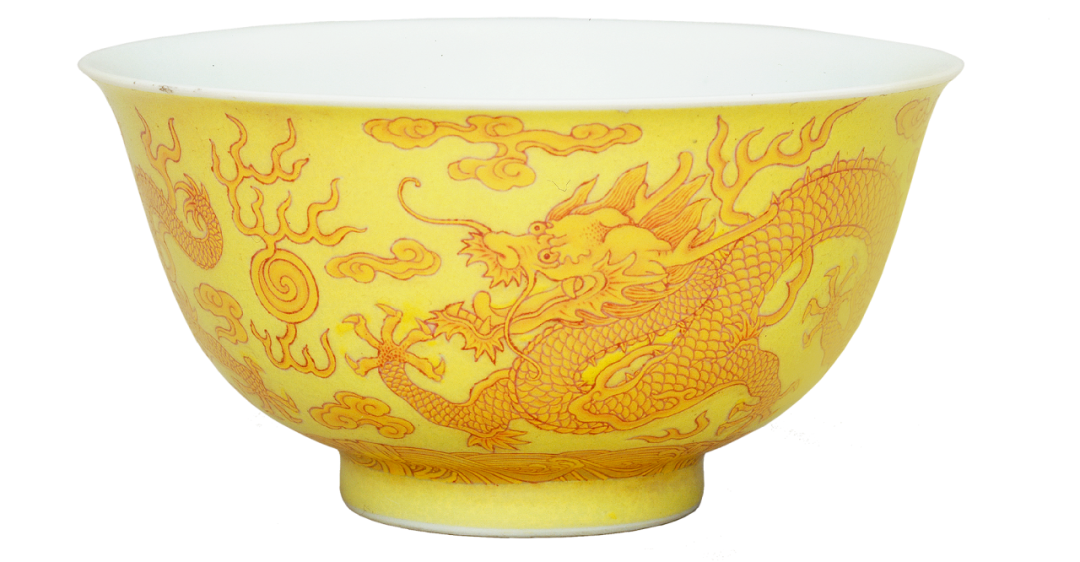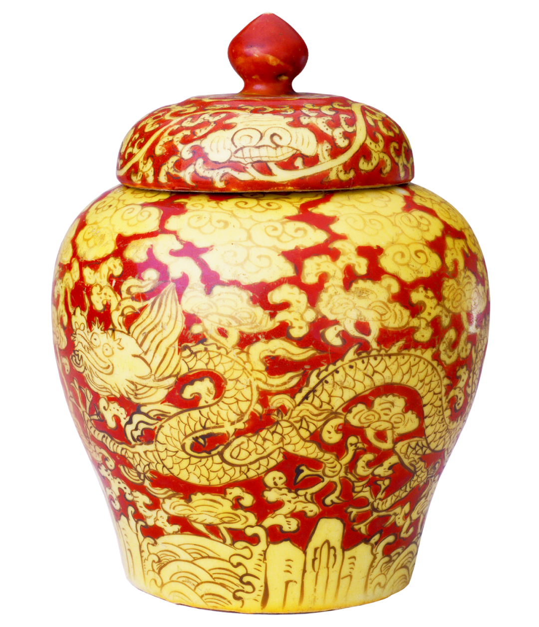 明嘉靖 黄地矾红彩海水云龙纹盖罐