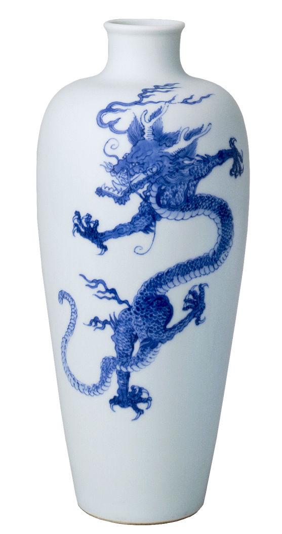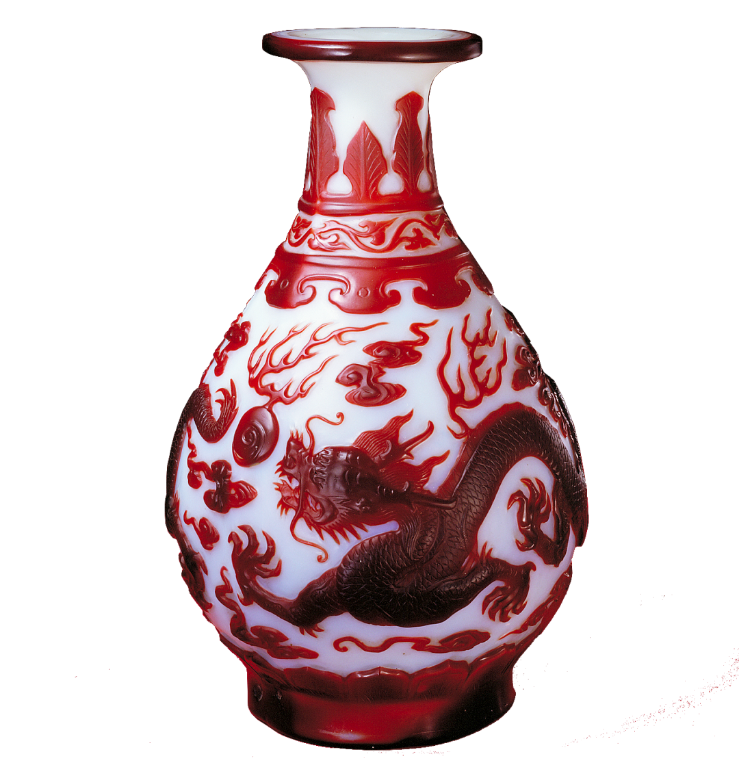 清 乾隆款白色地套红色玻璃双龙赶珠瓶