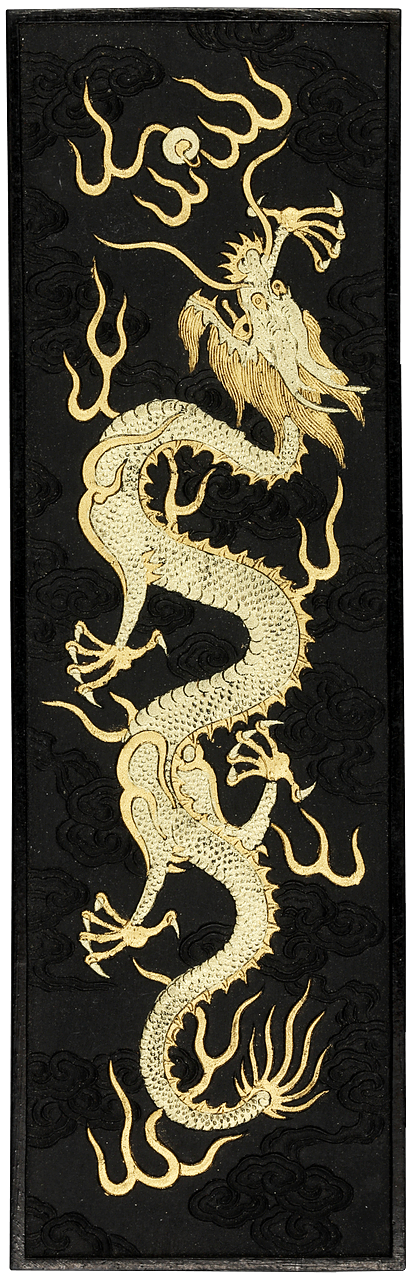 清乾隆 各色描金粉笺-黄色龙戏珠纹笺