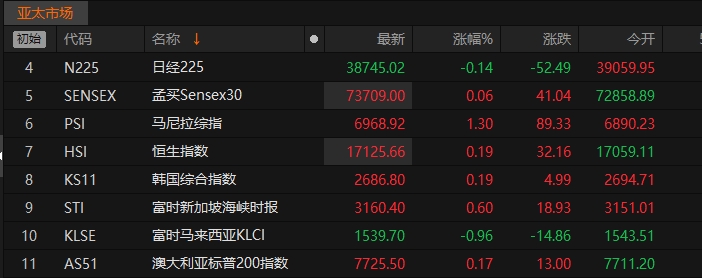 亚太股市午间涨跌互现 日经225指数跌0.14%
