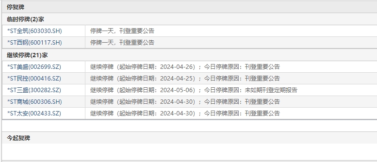 上证报中国证券网讯 5月8日,2家公司临停:*ST全筑、*ST西钢。