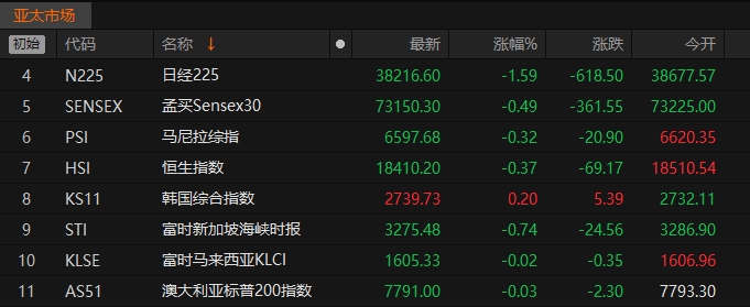 亚太股市午间跌多涨少 日经225指数跌逾1%