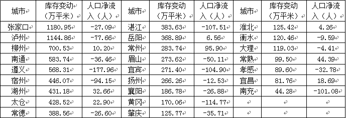 (3)部分三四线城市库存由“去”变“补”,人口净流出区域长期风险积聚