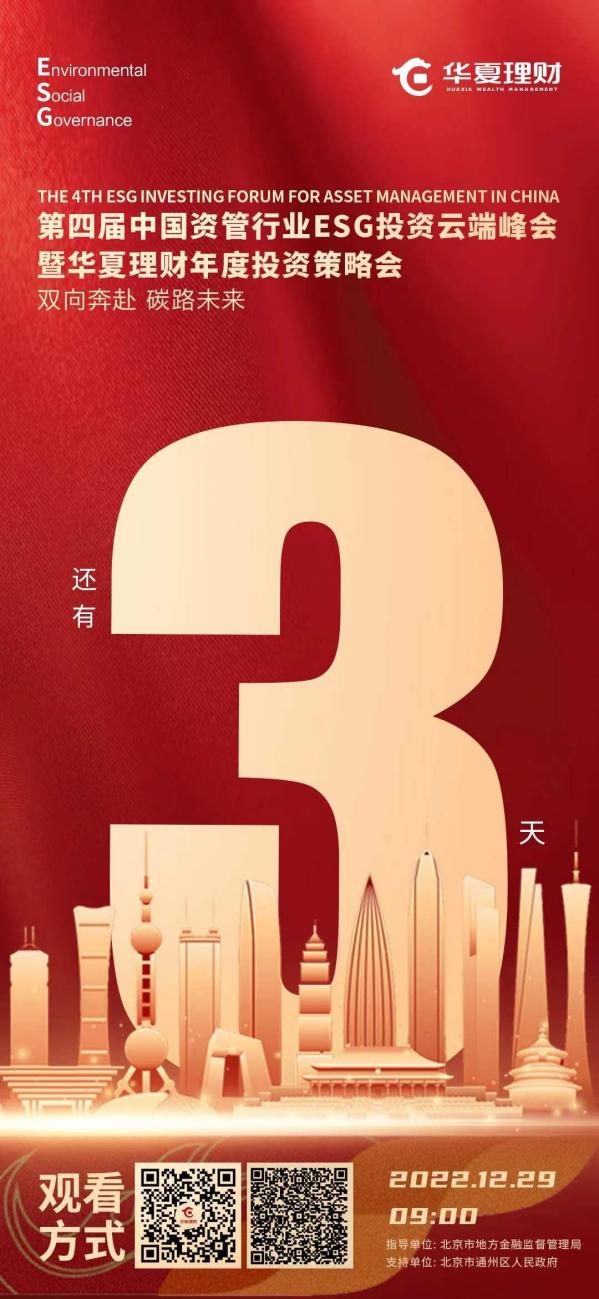 12月29日上午9点,由华夏理财主办的“第四届中国资管行业ESG投资云端峰会暨华夏理财年度投资策略会”将在云端与大家见面。