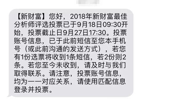 9月20日,投票人收到一则来自新财富的消息,提醒投票人尽快于中秋节之前完成投票。