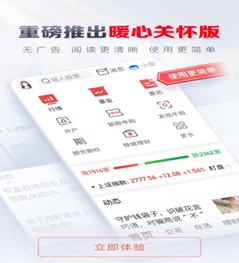 其中,针对老年群体视力衰退后,阅读界面容易感到视觉疲劳的问题,关怀版对字体大小、间距、对比度等进行调整,同时减少广告和各类提示,方便老年人浏览信息,并对老年用户聚焦的核心功能区进行优化,让他们的视觉体验与核心功能操作更为流畅。此外,考虑到老年群体金融意识较为薄弱的情况,关怀版在首页信息流中提供证券等金融相关的防骗知识,提高老年用户的警惕性,避免上当受骗。
