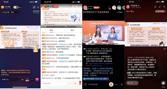 本次直播活动充分利用互联网平台,以防范非法证券活动为主线,打通了平安证券各部门、各平台之间的流量池,在平安证券App、平安好车主App、大智慧App、平安证券视频号同步开启,并制作了十余种用于投放在各个平台的宣传物料,包括置顶banner、朋友圈海报、信息流广告等多种形式,联动平安证券各个流量平台进行传播,最大程度地向投资者宣讲防范非法证券知识。据后台数据统计,本场直播在各平台总浏览量近一万,广大投资者反响热烈积极参与其中,活动取得了积极的投教效果。