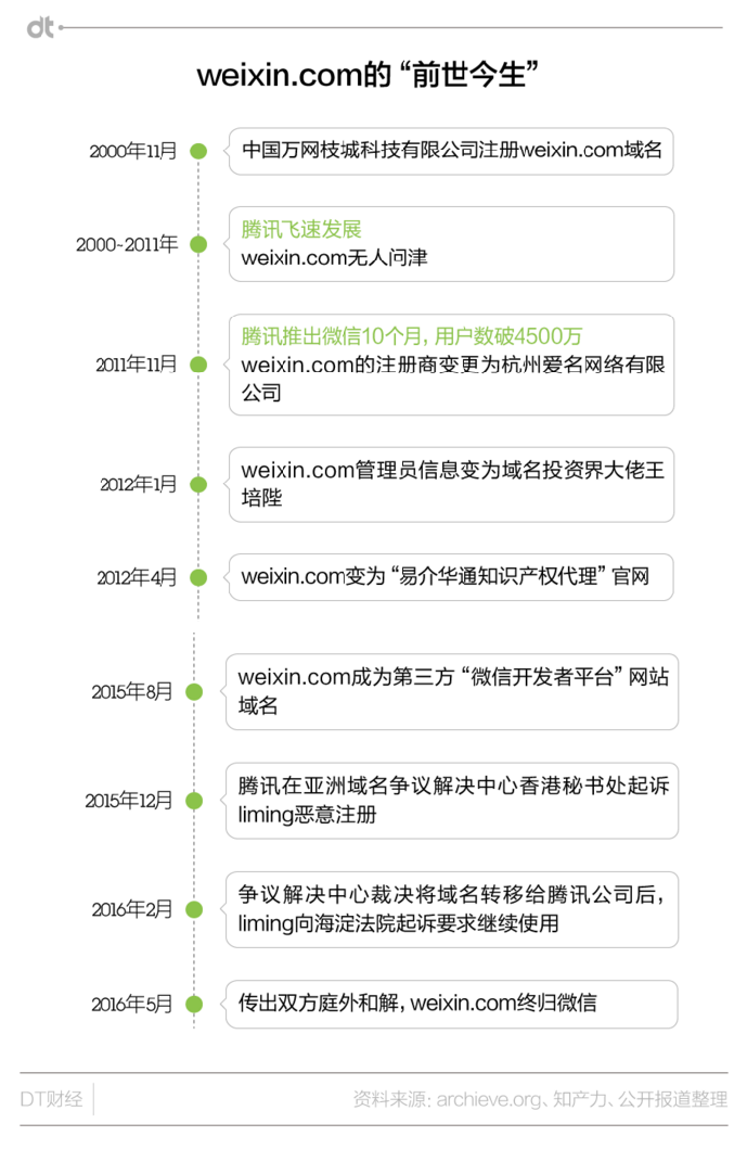 weixin这个域名的纠纷,总的来说充满着各方势力的各种投资门道,DT君为大家总结了一下。