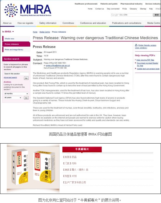 英国药品局:同仁堂牛黄解毒片含巨量有害毒素