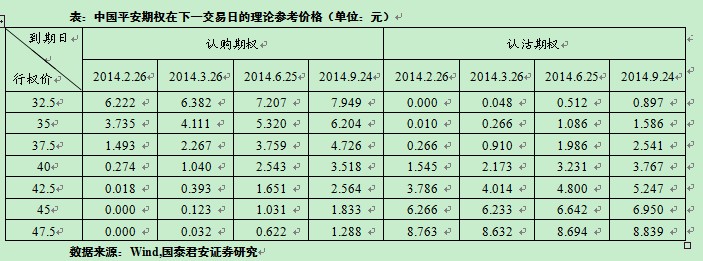 中国平安各期权合约下一交易日的理论参考价格