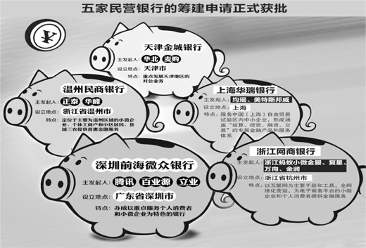 近日,首批试点的5家民营银行已全部获批筹建,民营银行的设立驶入“快车道”