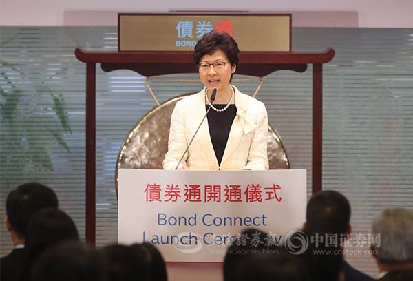 在3日举行的债券通开通仪式上,香港特区行政长官林郑月娥作为仪式主礼嘉宾致辞。她表示,债券通为内地与香港市场互联互通揭开新篇章。