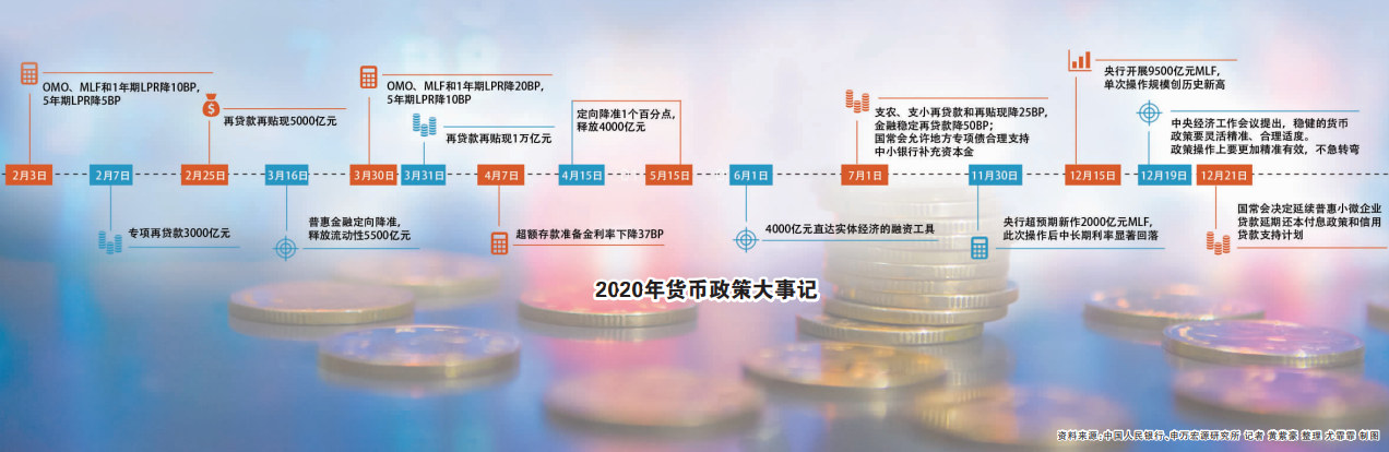盘点2020年,货币政策“暖意”频传。三次实施降准,多次释放中长期资金,推出涉及9万亿元货币资金的应对措施,广义货币和社融增速高于2019年。
