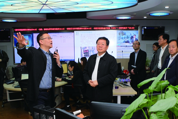 2015年6月2日,时任新华社社长、党组书记蔡名照在上海证券报调研,了解职工的工作、生活情况。