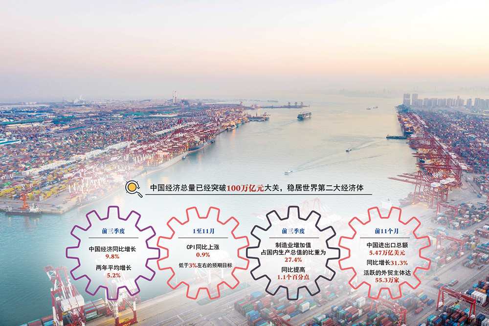 从经济增长看,GDP增速国际领先。前三季度,中国经济同比增长9.8%,两年平均增长5.2%,在主要经济体中是领先的。据国际货币基金组织等主要国际组织预计,2021年中国经济增速将达到8%,位居主要经济体前列。