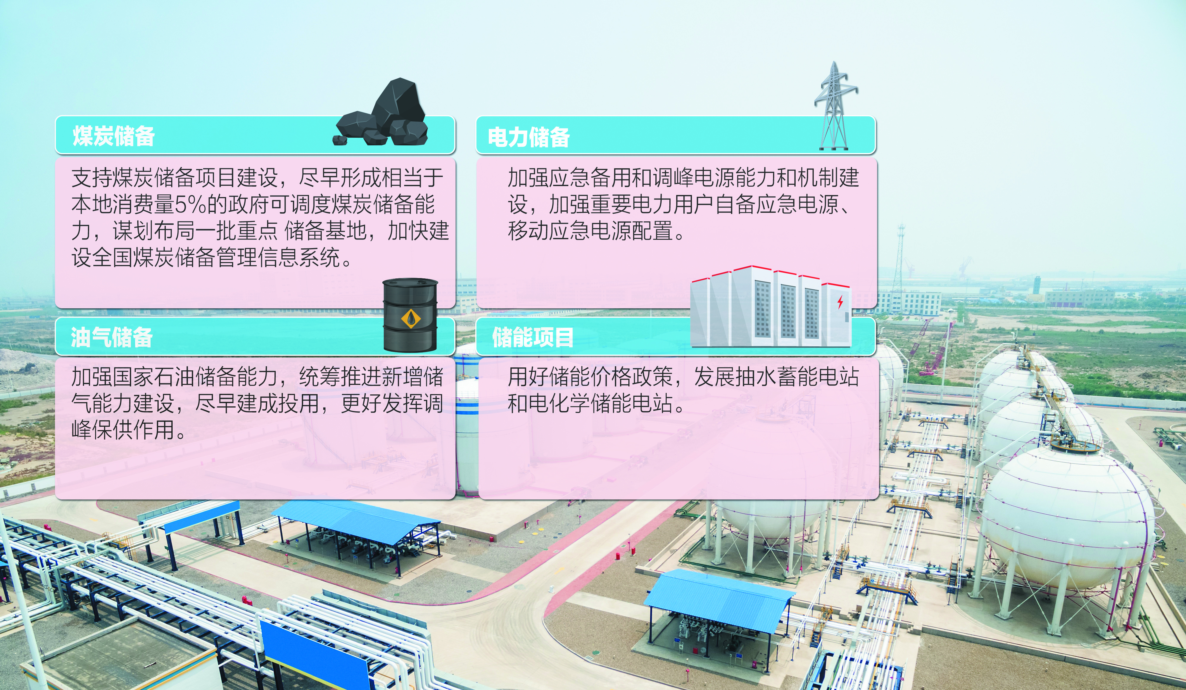 在新增储备方面,今年我国将加快推进2亿吨以上政府可调度煤炭储备能力建设;新增50亿立方米以上储气设施;推动全国应急备用和调峰电源达到3亿千瓦以上。