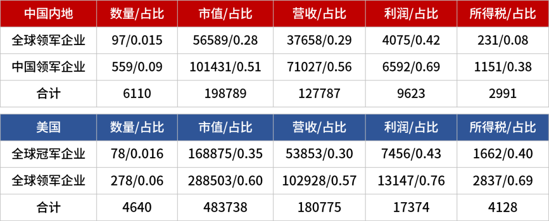 中国领军企业数据占比表