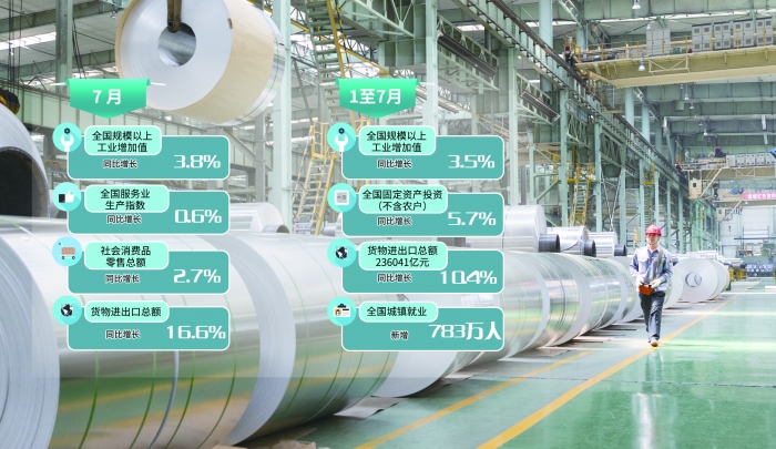 7月以来,一揽子稳经济政策举措持续发挥作用,7月主要生产需求指标基本稳定。