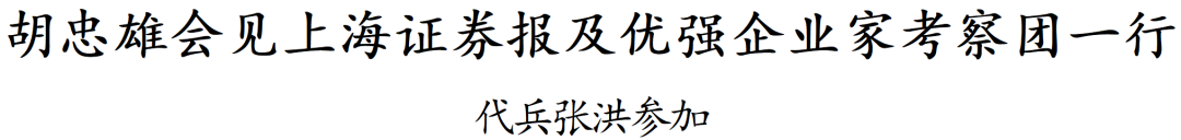 胡忠雄会见上海证券报及优强企业家考察团一行