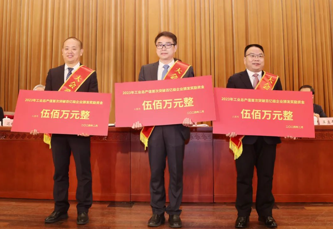 大会还通报了南京市“五拼五比晒五榜”评比结果,为全市首批“国家卓越工程师团队”、国家级专精特新“小巨人”企业、国家“数字领航”企业、国家技术创新示范企业、国家级智能制造示范工厂揭榜单位颁奖和授牌,为2023年新增国家制造业创新中心(国家高性能膜材料创新中心)揭牌。南京市政府还为2023年工业总产值首次突破百亿级的企业颁发500万元奖励资金。