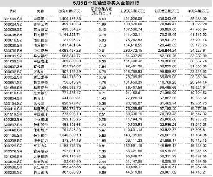 5月5日,沪指大跌4.06%,创年内第二大单日跌幅。最新两融数据显示,暴跌当日融资客逆势抄底,净买入超过百亿元。其中,传媒、银行、医药生物、房地产等行业最受青睐,个股方面,中国重工、苏宁云商、东方财富、招商银行等净买入金额较大。另外,两市最新融资余额超过百亿元的13只个股中,有8只在当日获融资净买入。