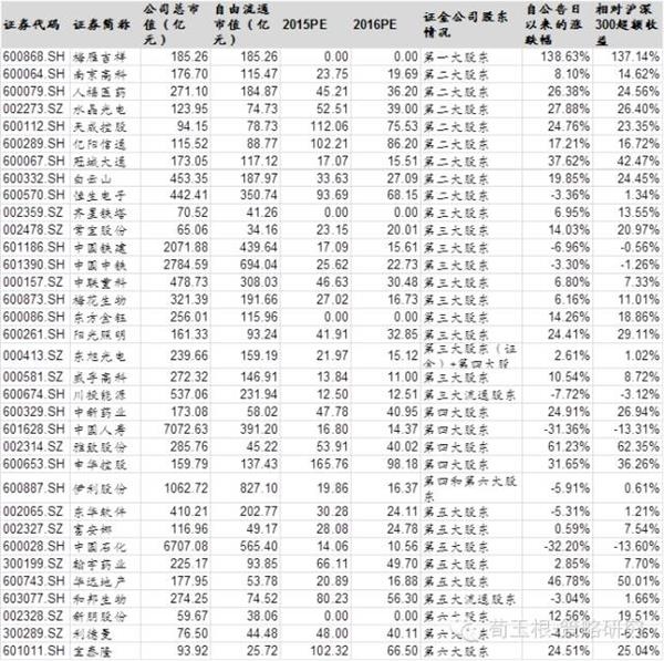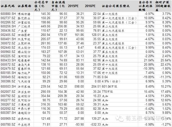 2、上市公司没有公告,但在投资者交流平台或其他渠道披露证金公司成为股东的,靠谱程度80%以上。这部分公司相对前者关注度有所下降,股价表现也相对一般,除了冠豪高新、海马汽车有20%以上的超额收益外,其他公司超额收益并不显著。