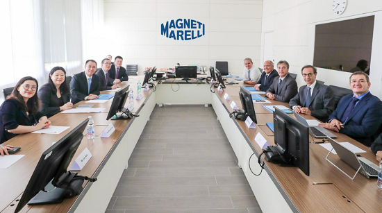 17日上午,许家印一行又马不停蹄考察了总部位于米兰的Magneti Marelli 集团(玛涅蒂马瑞利,简称马瑞利),与马瑞利全球首席运营官 Ermanno Ferrari 等高管举行了深入会谈。