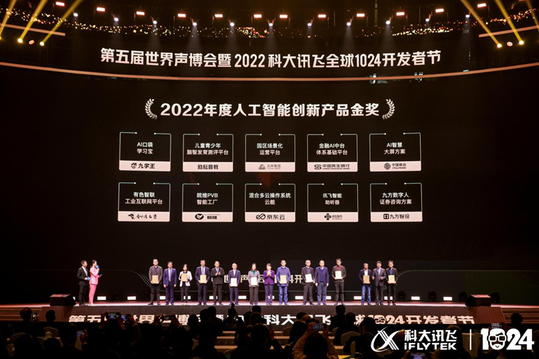 11月18日,第五届世界声博会暨2022科大讯飞全球1024开发者节在安徽合肥盛大举行。大会评出了本年度在人工智能领域具有创新突破的10个杰出产品,九方智投凭借“九方数字人证券咨询方案”荣获2022年度人工智能创新产品金奖,九方智投产品技术中心总监张福明受邀出席领奖。一同入选的还有民生银行、中国移动、讯飞医疗等十家知名企业。