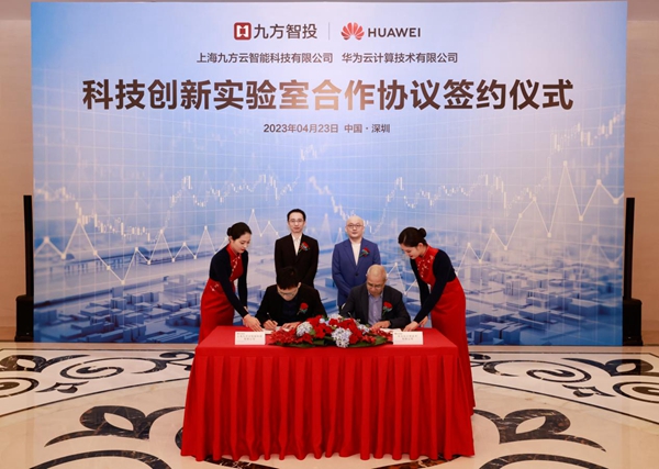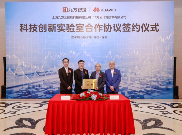 2023年4月23日,上海九方云智能科技有限公司(简称“九方智投”)与华为云计算技术有限公司(以下简称“华为云”)在深圳签署合作协议。双方将共同建立科技创新实验室,开展新技术新产品的研发工作,创新金融数智化科技的方法,提高金融业务场景下的应用效率。
