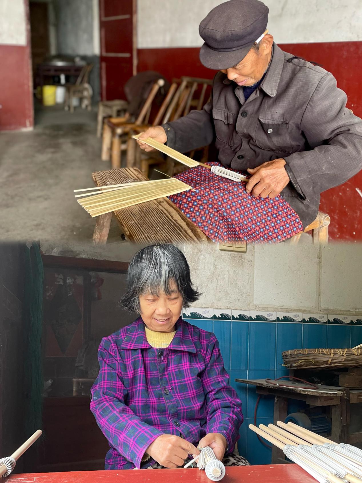 ▲在湘潭县石鼓镇,几乎家家户户都会制作油纸伞。