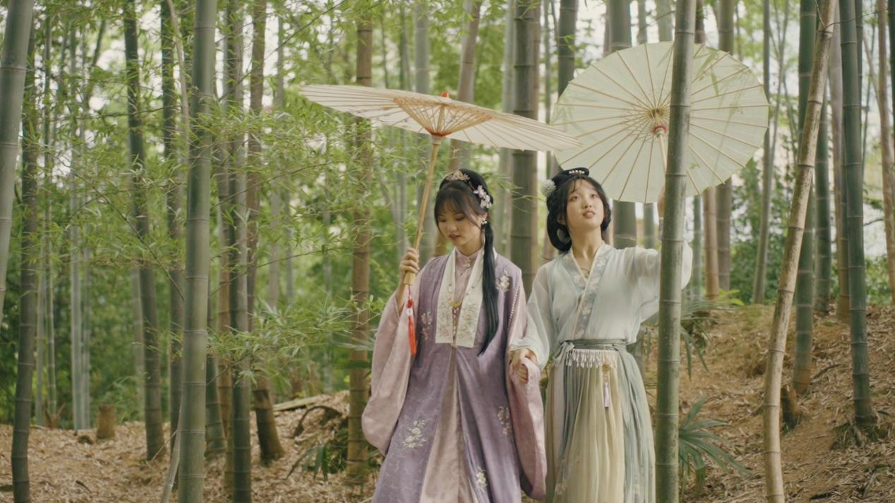 屋后的昌山竹林,也成了周乐的创作“宝地”。他时常带着拍摄团队,还有汉服模特,拍摄各种古风视频、唯美照片。这些内容往往在社交平台上引起追捧,“一段视频就能卖爆一款油纸伞”。据周乐介绍,网店客户大多在15-25岁,以广东、河南两地消费者最多,“这两地都是传统文化、汉服文化非常盛行的省份”。
