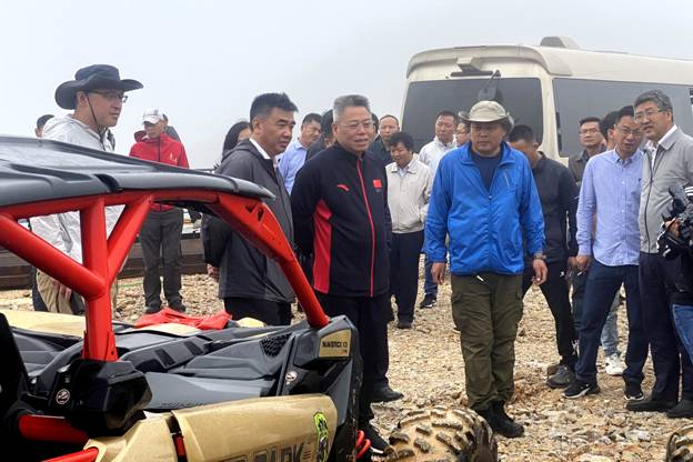 在现场,王世杰听取了越野e族山地英雄会项目负责人关于场地建设和赛事筹备工作的情况汇报,对前期工作给予充分肯定。