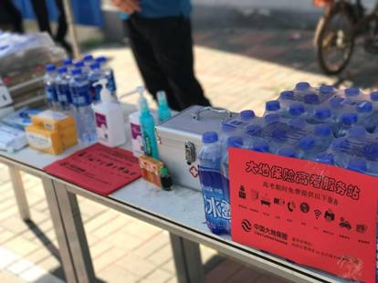 场内,学子们奋笔疾书,为实现梦想而努力,场外,中国大地保险也在为考生们提供最给力的后援服务。公司推出“爱心陪考,门店助力”活动,所有考点附近的门店均设立高考服务站,为考生及家长提供休息区,免费提供茶水、WIFI、复印、洗手间和充电等服务。同时,组织公司志愿者,在各考场附近设立“爱心服务站”,为考生和家长提供饮用水、文具、防暑药品、扇子、消毒液、口罩等物资,做考生和家长的最强“场外应援”。