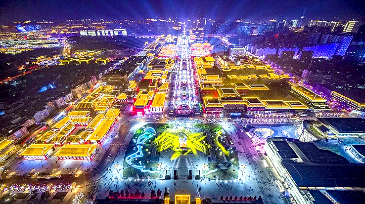 大唐不夜城步行街位于大雁塔脚下,是首批“全国示范步行街”之一。近年来,步行街突出历史文化特色,以唐代元素为主线,创新打造文化浓厚的现代时尚街区,成为西安“夜游经济”主阵地和潮流时尚新坐标。